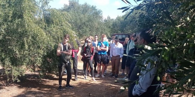 Πιο αναλυτικά, στα πλαίσια της επίσκεψης στις εγκαταστάσεις του Αγροτικού Συνεταιρισμού Ελαιοπαραγωγών Αστερουσίων και μετά το τέλος της συνάντησης εκεί, οι φοιτητές και οι καθηγητές, μετέβησαν σε έναν από τους ελαιώνες που μετέχουν στο πρόγραμμα «LIFE Ζωντανοί Ελαιώνες». Εκεί, ξεναγήθηκαν ανάμεσα στις φορτωμένες – λόγω της βεντέμας- ελιές του Συνεταιρισμού, με την κ. Βαρίκου να εξηγεί τα πάντα σχετικά με τη δράση που υλοποιείται για την αναγέννηση του τοπικού οικοσυστήματος και τα πολλά οφέλη που θα προκύψουν για τους αγρότες και όλη την τοπική κοινωνία.