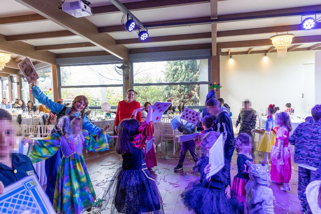 Οι μικροί προσκεκλημένοι απόλαυσαν πραγματικά την εκδήλωση, δίνοντας το “παρών” με άκρως αποκριάτικη διάθεση και πρωτότυπες μεταμφιέσεις. Στο πάρτι είχαν την ευκαιρία να δοκιμάσουν τις χορευτικές τους ικανότητες και να συμμετέχουν σε δημιουργικές δραστηριότητες και παιχνίδια που είχαν προετοιμάσει οι ανιματέρ. Το σκηνικό συμπλήρωνε ο αποκριάτικος στολισμός αλλά και τα γευστικά εδέσματα.