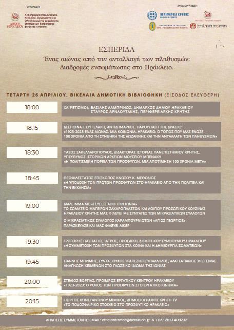 ξεριζωμού, την εγκατάσταση στο Ηράκλειο του 1923 και τη διαδρομή της ενσωμάτωσης των