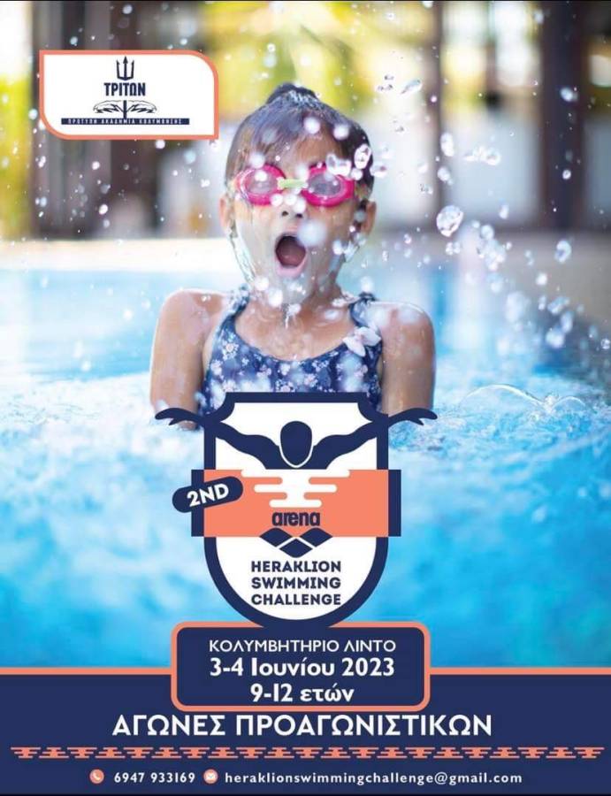 Η ομάδα του Τρίτωνα Ηρακλείου και η Περιφέρεια Κρήτης συνδιοργανώνουν τους αγώνες κολύμβησης προαγωνιστικών ηλικιών 9-12 ετών «Arena Heraklion Swimming Challenge 2023».