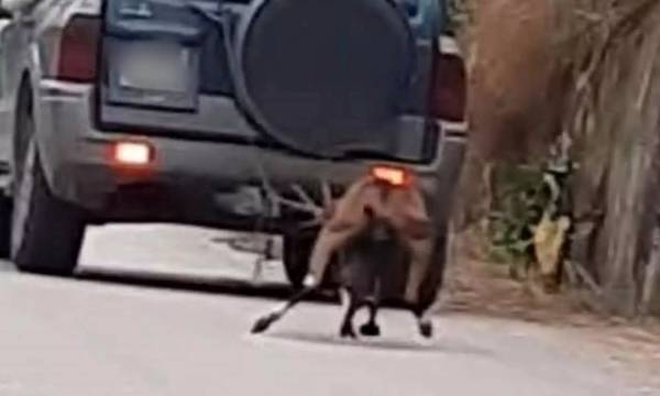 Ο 63χρονος είχε δέσει με σκοινί και τράβαγε το ζώο, το οποίο παραπάταγε, πίσω από το αυτοκίνητό του. Το περιστατικό έγινε το απόγευμα της Πέμπτης στην περιοχή του Μουζακίου Ζακύνθου.