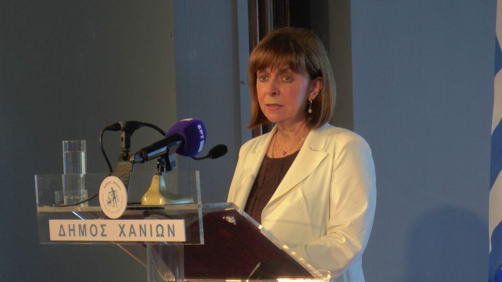 Σε επίτιμη δημότη Χανίων αναγορεύτηκε σήμερα η πρόεδρος της Δημοκρατίας Κατερίνα Σακελλαροπούλου.