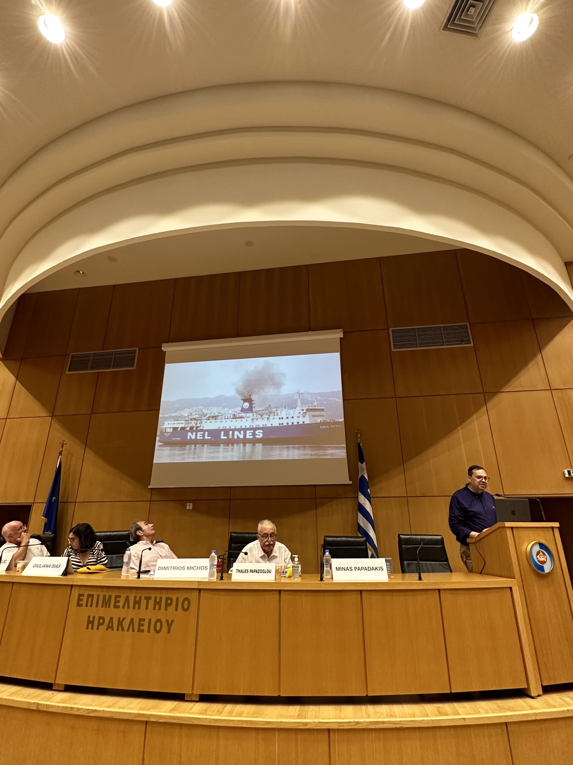 Εν κατακλείδι τόνισε Ο Διευθύνων Σύμβουλος του ΟΛΗ κ. Μηνάς Παπαδάκης ότι στην τρέχουσα περίοδο, γίνονται προσπάθειες για καθαρές μεταφορές, τόσο στην ξηρά όσο και στη θάλασσα. Ο Οργανισμός Λιμένος Ηρακλείου (ΟΛΗ) εξετάζει συνεπώς τις δυνατότητες καθαρών θαλάσσιων μεταφορών με βάση το λιμάνι του Ηρακλείου. Μια τέτοια εξέλιξη θα έχει οφέλη για τους κατοίκους του Ηρακλείου με την απαλλαγή της πόλης από τους ρύπους που εκπέμπονται από τα πλοία. Η ηλεκτρική ενέργεια, το πράσινο υδρογόνο, και η αμμωνία μπορούν να χρησιμοποιηθούν προς την κατεύθυνση αυτή.