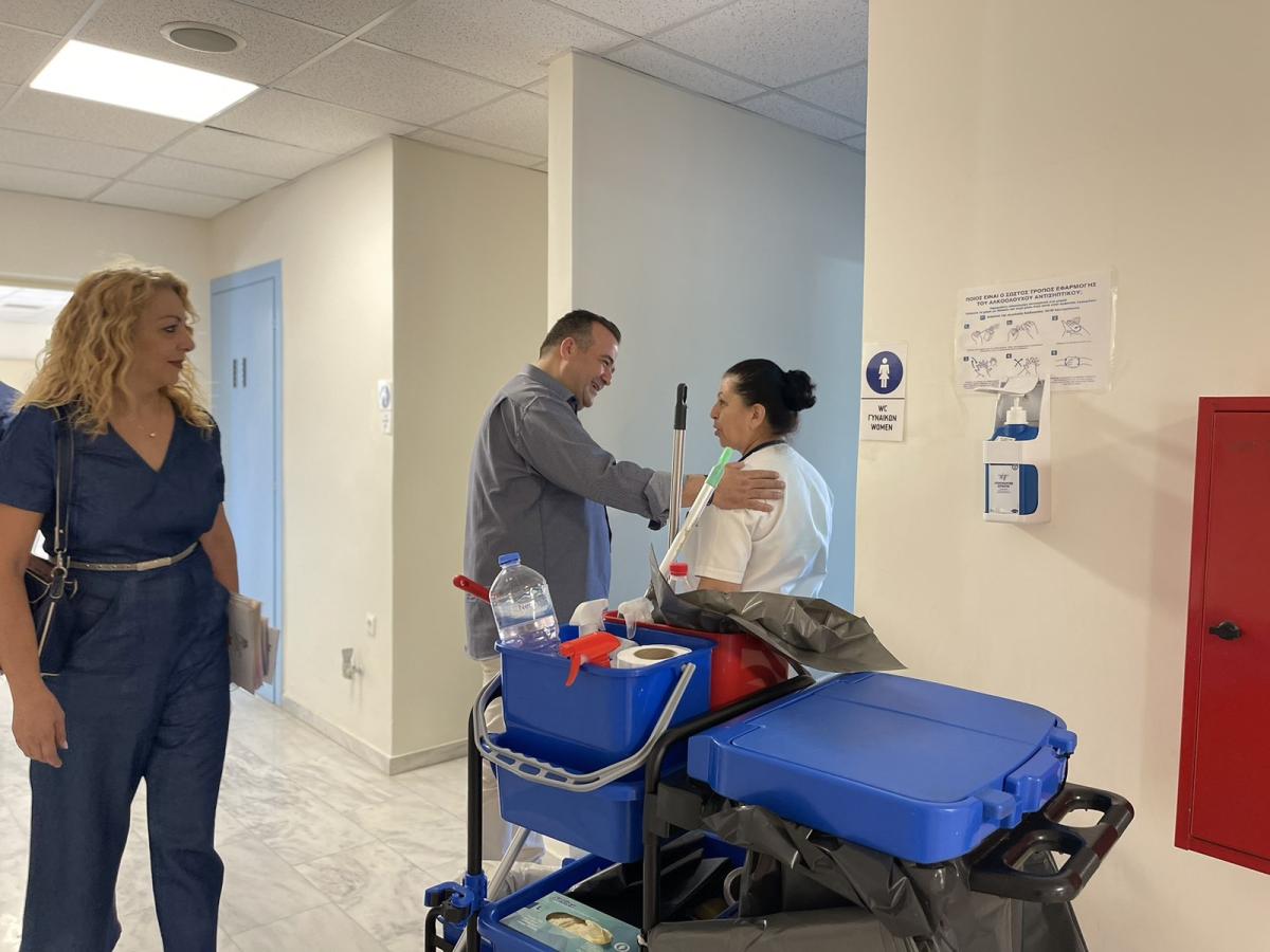 Επίσης συναντήθηκε με το Σωματείο των Εργαζομένων του Πανεπιστημιακού Νοσοκομείου και ενημερώθηκε για τα προβλήματα που αντιμετωπίζουν.