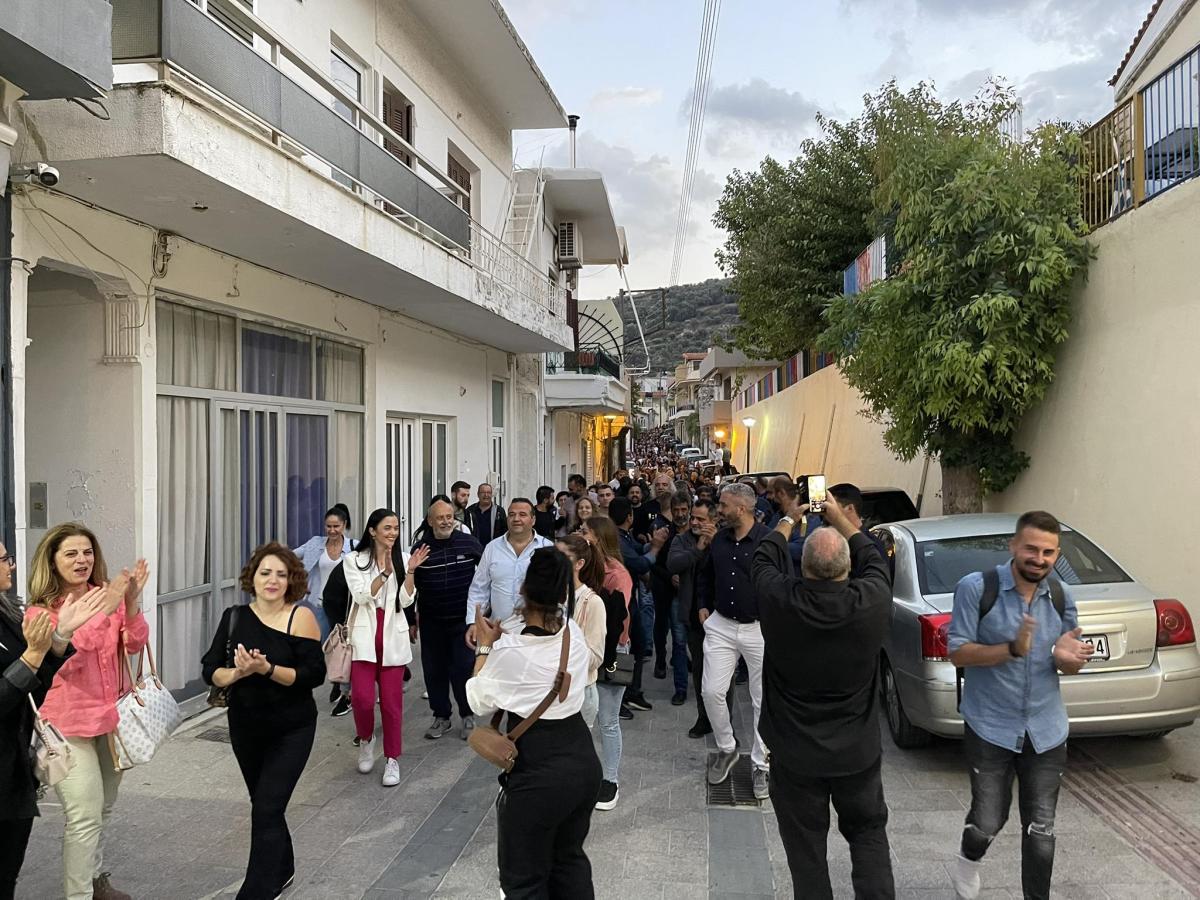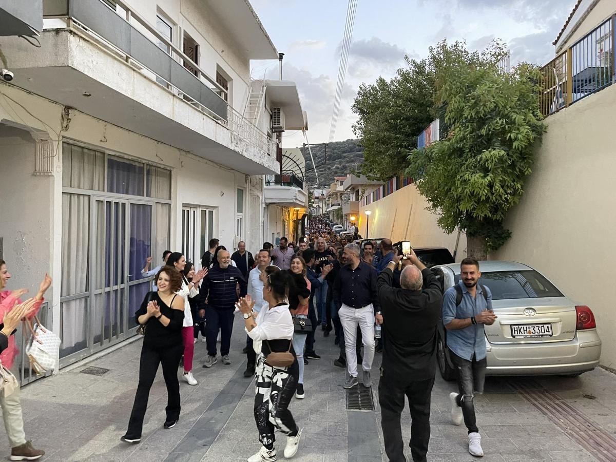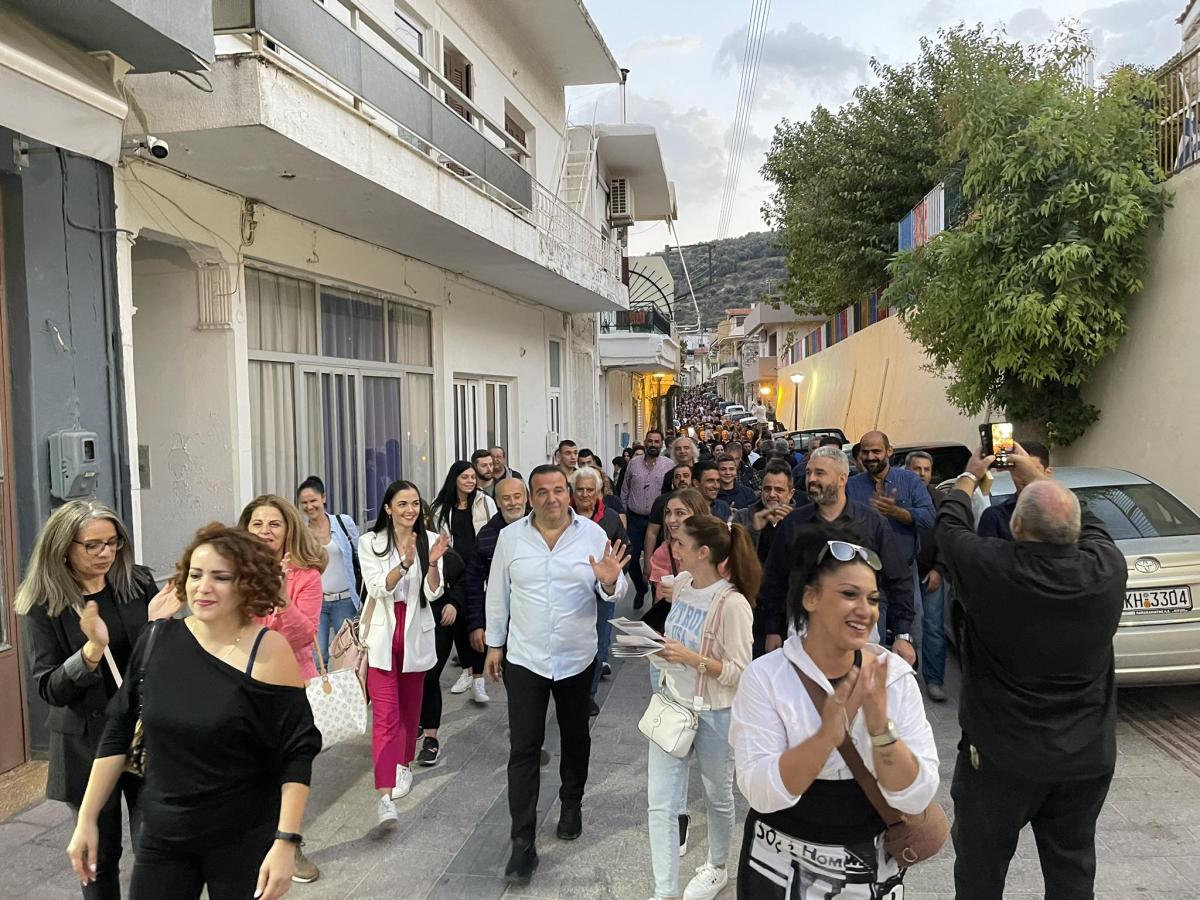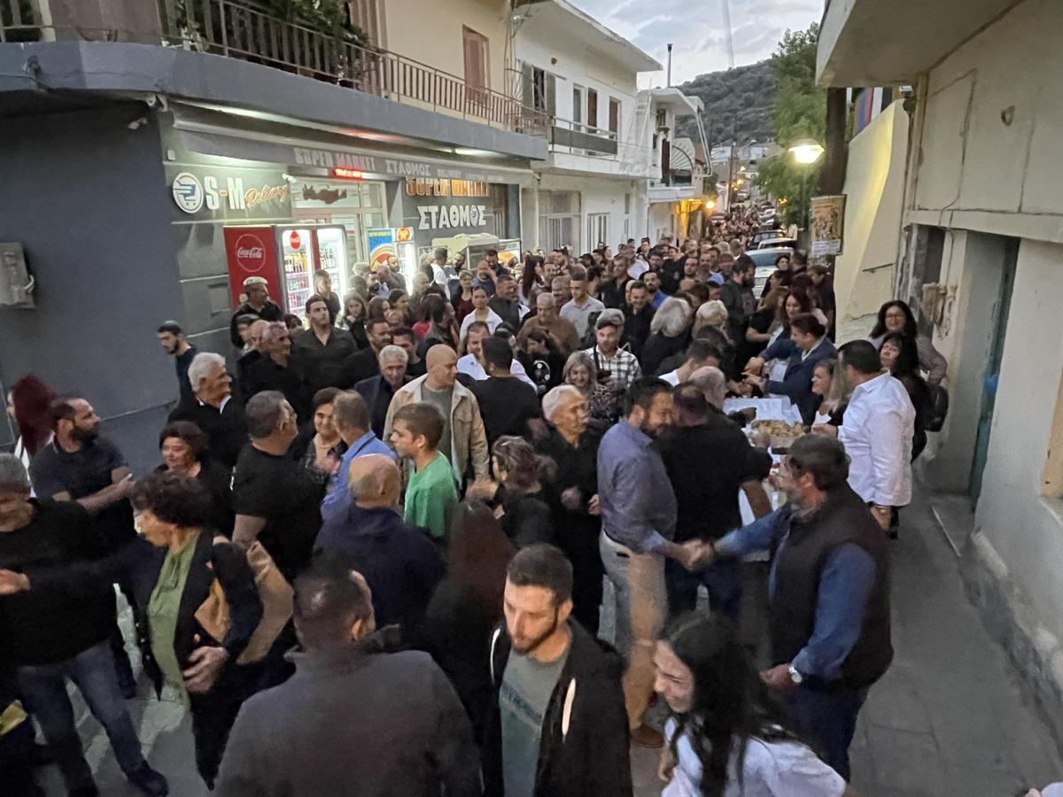 Είχε προηγηθεί η περιοδεία σε Σάρχο, Κιθαρίδα και στο χωριό του Κρουσώνα όπου ο Δημήτρης Πιτσικάκης χαιρέτησε τους συντοπίτες και όλοι μαζί κατευθύνθηκαν στην κεντρική πλατεία.