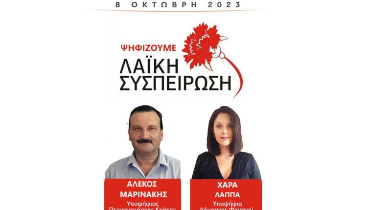 Την Κυριακή 1 Οκτώβρη, κλιμάκιο της «Λαϊκής Συσπείρωσης» με επικεφαλής τον Αλέκο Μαρινάκη, περιφερειακό σύμβουλο και υποψήφιο Περιφερειάρχη Κρήτης, τη Χαρά Λάππα, υποψήφια Δήμαρχο Φαιστού, τους υποψήφιους περιφερειακούς συμβούλους Χουστουλάκη Γενοβέφα και Μαματζάκη Βαγγέλη, τους υποψήφιους δημοτικούς συμβούλους Κατερίνα Παπαδογιαννάκη, Χριστίνα Καλαϊτζάκη και Στέλιο Νικολουδάκη, περιόδευσαν στον Κόκκινο Πύργο στον δήμο Φαιστού και στη συνέχεια σε χωριά της Γόρτυνας (Πλώρα, Πλάτανο, Μητρόπολη).