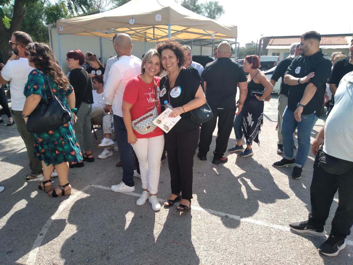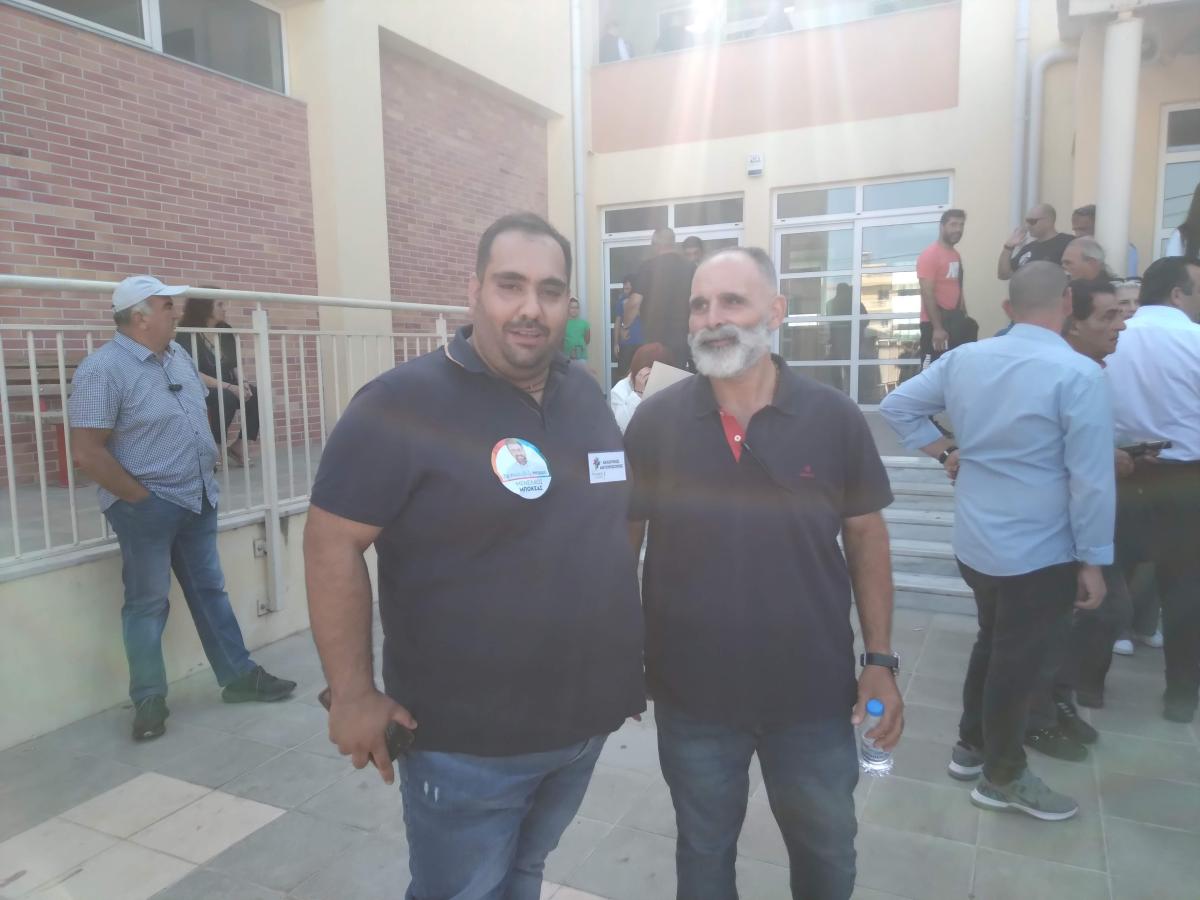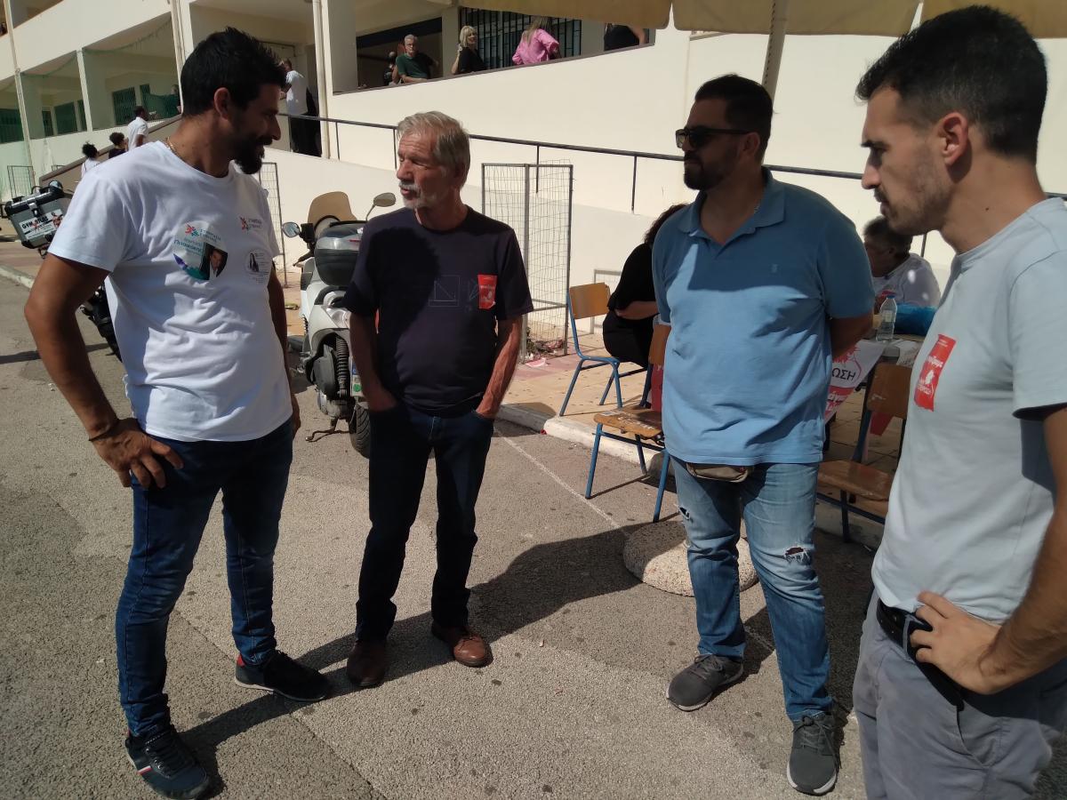 Μαζί με τους ψηφοφόρους και τα επιτελεία των υποψηφίων δημάρχων, με μπλούζες, καπέλα και αυτοκόλλητα.