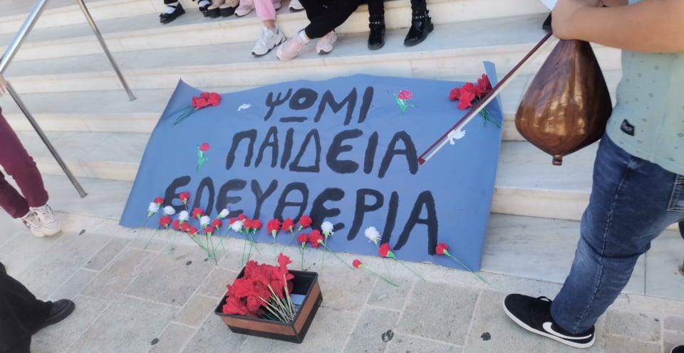 Μια ξεχωριστή εκδήλωση οργάνωσαν σήμερα το πρώτο και το δεύτερο δημοτικό σχολείο Κρουσώνα για να τιμήσουν την επέτειο της εξέγερσης του Πολυτεχνείου. Διδάσκοντες και μαθητές από δύο τάξεις συγκεντρώθηκαν στον προαύλιο χώρο του Ιερού Ναού Αγίας Τριάδας με κόκκινα γαρύφαλα, και το σύνθημα “Ψωμί, παιδεία, ελευθερία”, μίλησαν για το μήνυμα της μέρας και τραγούδησαν για τα παιδιά που εκείνες τις μέρες έδωσαν τον αγώνα για τη δημοκρατία και την ελευθερία.