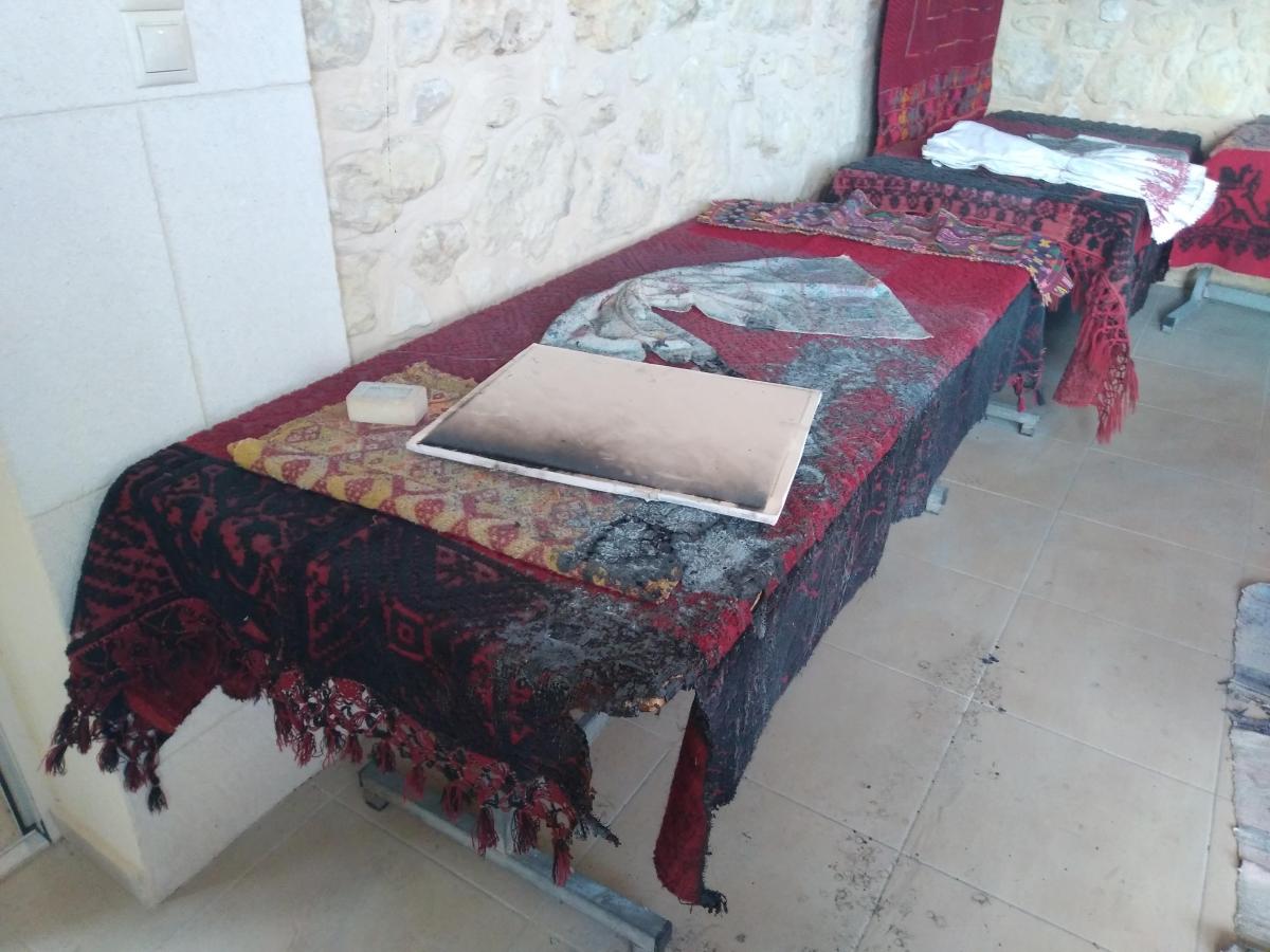 Οι σπινθήρες  έπεσαν πάνω στα υφαντά και εκείνη ήταν η ώρα που η μυρωδιά κινητοποίησε όσους ήταν στην δίπλα αίθουσα.