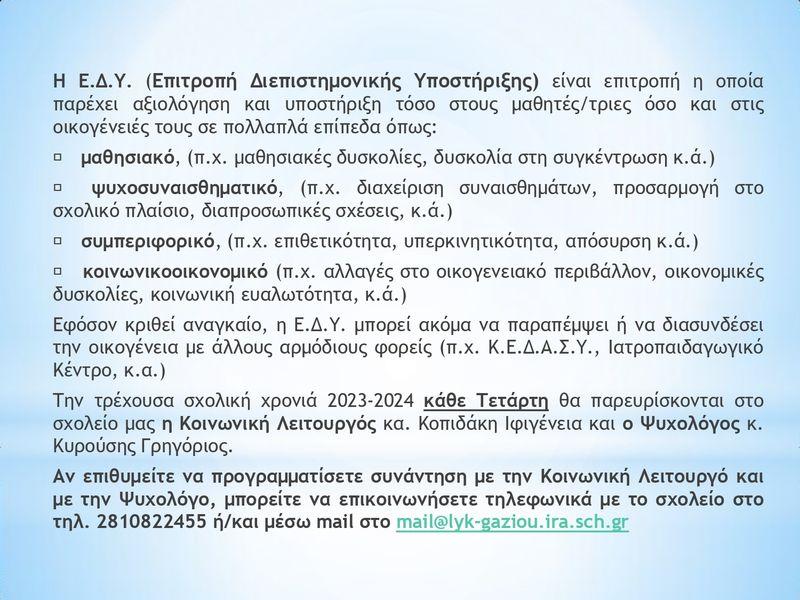 Οι γονείς κλήθηκαν σε συνάντηση και ενημερώθηκαν για όσα ισχύουν στο σχολείο, εξέφρασαν τις απόψεις τους και συμφώνησαν σε ένα κοινό πλαίσιο συνεργασίας ώστε να λειτουργεί το Λύκειο Γαζίου με τον καλύτερο δυνατό τρόπο.