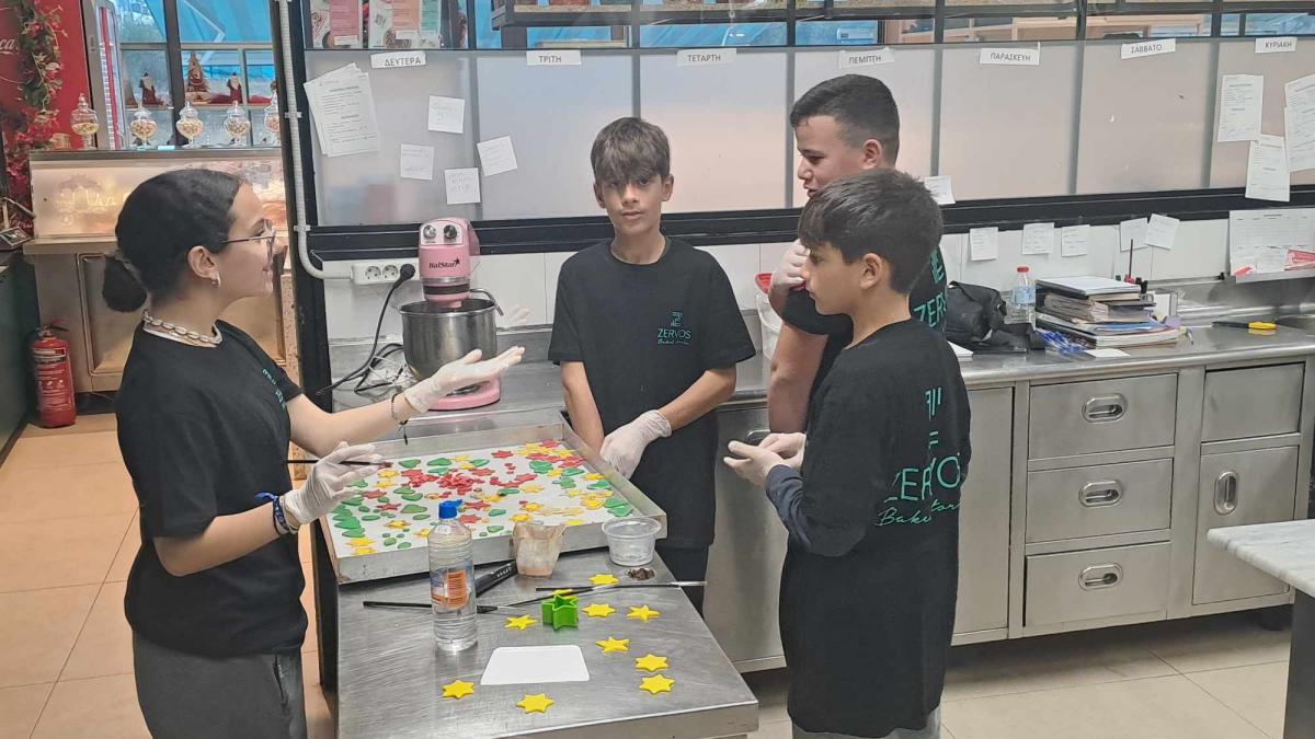 Εκεί φόρεσαν ποδιά και γάντια και μυήθηκαν στην τέχνη πως να φτιάξουν τα δικά τους μπισκότα, που θα προσφερθούν στο χριστουγεννιάτικο παζάρι του σχολείου τους και τα έσοδα θα διατεθούν στον Παγκρήτιο Σύλλογο Γονέων και Φίλων Παιδιών με Νεοπλασία ΗΛΙΑΧΤΙΔΑ.