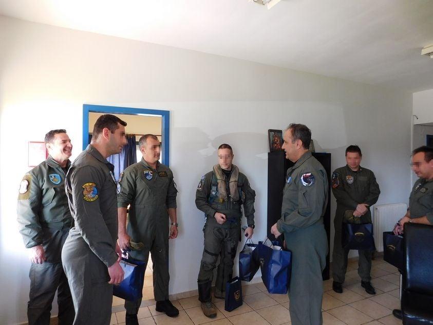 Κατά την άφιξή του στην 115ΠΜ και κατά τη διάρκεια της επίσκεψής του στην 130ΣΜ, ο Αρχηγός συνομίλησε και αντάλλαξε ευχές με το προσωπικό, καθώς και με τους Ιπταμένους και Τεχνικούς των αεροσκαφών επιφυλακής και του ελικοπτέρου ετοιμότητας.