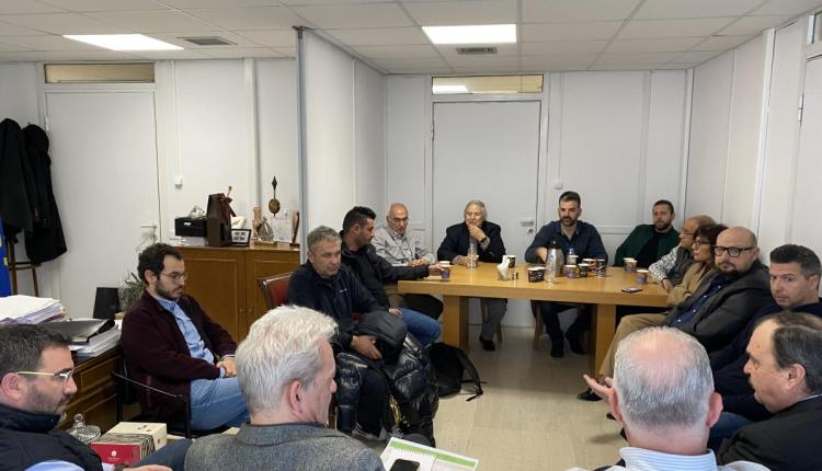 Με τους εργολήπτες που εκτελούν έργα οδοποιίας του Δήμου Ηρακλείου συναντήθηκε το πρωί της Τρίτης 16/1/2024 ο Δήμαρχος Αλέξης Καλοκαιρινός, μαζί με τους Αντιδημάρχους Τεχνικών Έργων Γιώργο Σισαμάκη και Οικονομικών & Ανάπτυξης της Τοπικής Οικονομίας Γιώργο Αγριμανάκη.
