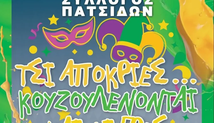 Το Σάββατο 9 Μαρτίου ο Πολιτιστικός Σύλλογος Πατσίδων σας προσκαλεί στην Πατσιδιανή Αποκριά! ΤΣΙ ΑΠΟΚΡΙΕΣ….ΚΟΥΖΟΥΛΕΝΟΝΤΑΙ ΚΑΙ ΟΙ ΓΡΕΣ!!!!!