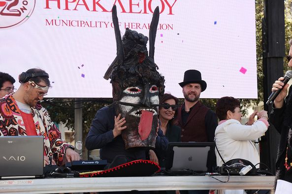 Ο Δήμαρχος Ηρακλείου Αλέξης Καλοκαιρινός, φορώντας μια αποκριάτικη μάσκα κήρυξε νωρίτερα την έναρξη της παρέλασης του καστρινού καρναβαλιού.