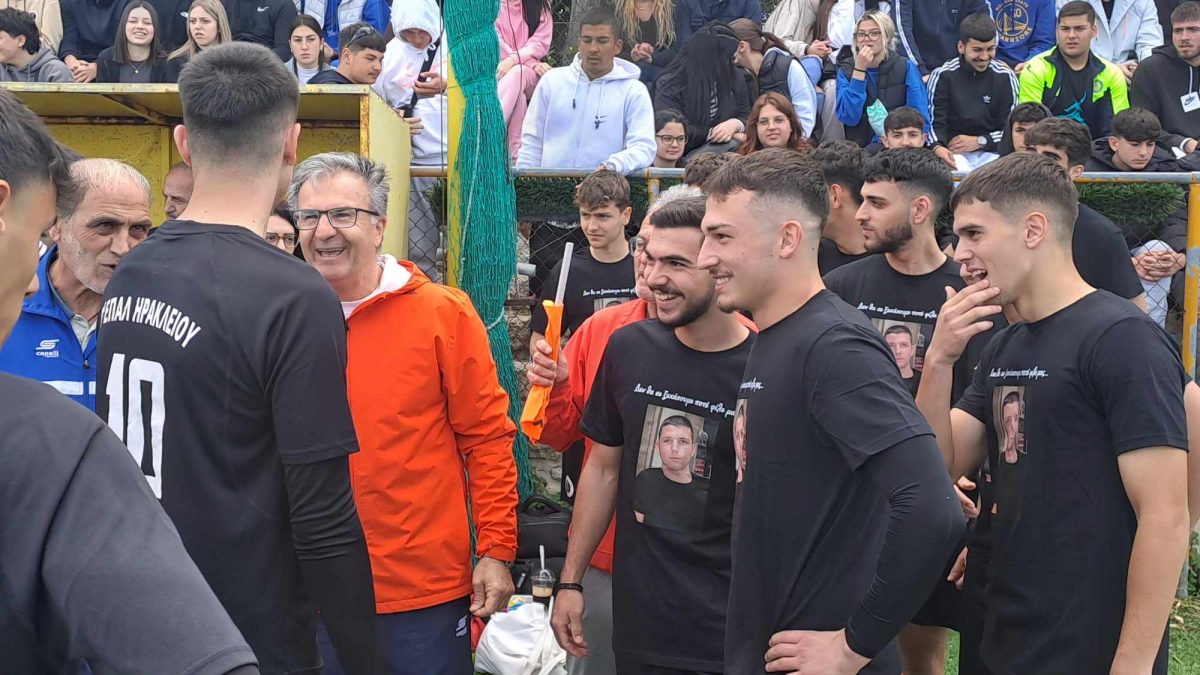Αυτός ο σπουδαίος αγώνας του ΓΕΛ Γαζίου αφιερώθηκε στον Γιώργο Παρασύρη. Η ομάδα του ΓΕΛ Γαζίου αγωνίστηκε φορώντας φανέλες με τη φωτογραφία του συμμαθητή τους που έχασε τη ζωή του σε τροχαίο στην παραλιακή Ηρακλείου τον περασμένο Νοέμβριο( δείτε εδώ)