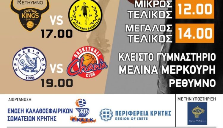 Το «Μελίνα Μερκούρη» θα βάλει και πάλι… τα γιορτινά του για να υποδεχθεί το μέλλον του Κρητικού μπάσκετ. Οι τέσσερεις ομάδες θα διεκδικήσουν το τρόπαιο του πρωταθλήματος Κρήτης, μέσω του οποίου θα εκπροσωπήσουν το νησί στο Πανελλήνιο πρωτάθλημα.