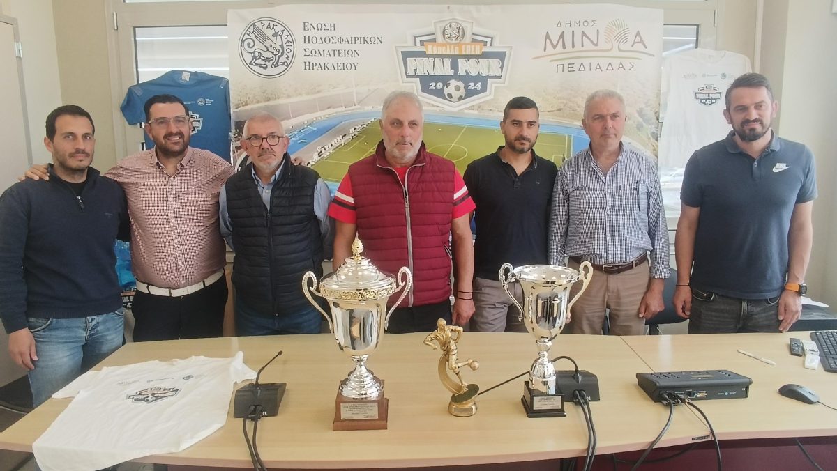 Οι διοργανωτές του 3ου Final Four του Κυπέλλου ΕΠΣΗ, Δήμος Μινώα Πεδιάδας, ΕΠΣΗ και Περιφέρειας Κρήτης, παρουσία των προπονητών και ποδοσφαιριστών των τεσσάρων φιναλίστ, παραχώρησαν σήμερα στο Δημοτικό Κατάστημα στο Αρκαλοχώρι, Συνέντευξη Τύπου για τη μεγάλη αυτή διοργάνωση, λίγες ημέρες πριν την σέντρα των αγώνων. Κατά τη διάρκεια της Συνέντευξης Τύπου εστάλησαν μηνύματα πολιτισμού και σεβασμού προς τους διοργανωτές και τις ομάδες, με το Δήμο Μινώα Πεδιάδας να είναι έτοιμος να φιλοξενήσει μια μεγάλη ποδοσφαιρική γιορτή από τις 10 έως τις 12 Μάϊου.