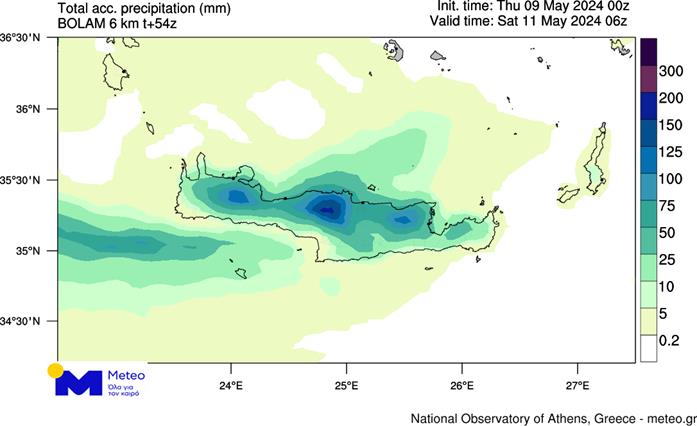Σημαντικές βροχές αναμένονται στην Κρήτη την Παρασκευή 09/05 και μέχρι τις πρωινές ώρες του Σαββάτου 11/05, όπως επισημαίνει ο Κώστας Λαγουβάρδος Διευθυντής Ερευνών στο Εθνικό Αστεροσκοπείο Αθηνών.