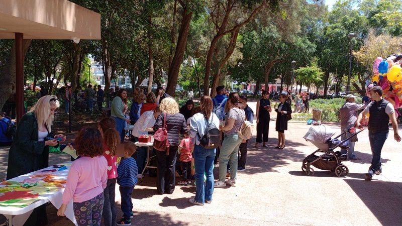 Ο Αλέξης Καλοκαιρινός συνοδευόμενος από τη σύζυγό του Άση Λυγερού, ενημερώθηκε για τις δράσεις που πραγματοποιήθηκαν στο κατάμεστο από μικρούς και μεγάλους πνεύμονα αναψυχής στο κέντρο της πόλης. Ο Δήμαρχος συνομίλησε με γονείς, παρακολούθησε τα δρώμενα και συνεχάρη τους εκπαιδευτικούς που εθελοντικά συμμετείχαν δημιουργώντας μαζί με τα παιδιά εικαστικές κατασκευές – δωράκια για τη μητέρα, διάβασαν παραμύθια και θύμισαν στα παιδιά ξεχασμένα παιχνίδια.