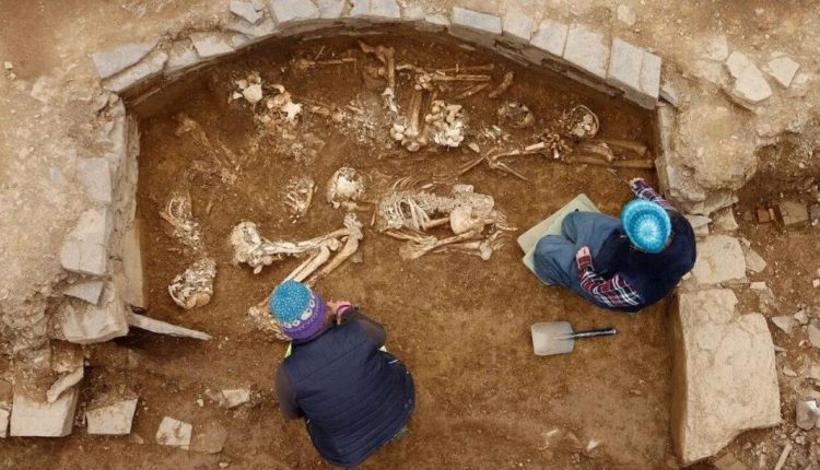 Δεκατέσσερις αρθρωτοί σκελετοί ανδρών, γυναικών και παιδιών, καθώς και άλλα ανθρώπινα λείψανα, ανακαλύφθηκαν σε ένα από τα έξι μικρότερα πλευρικά κελιά που περιβάλλουν έναν μεγάλο πέτρινο θάλαμο.
