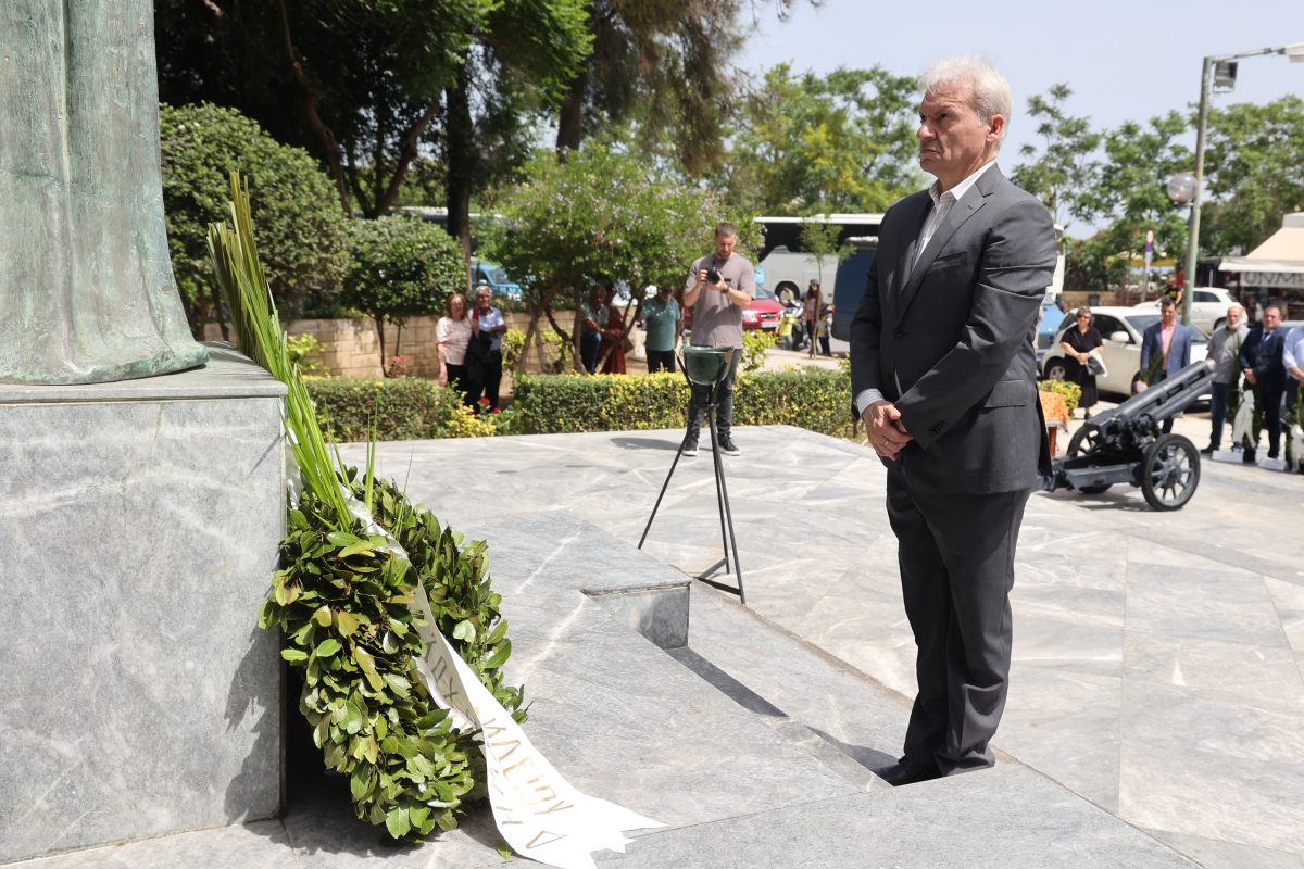 Είμαστε σήμερα εδώ, θυμόμαστε, αλλά πρέπει η μνήμη αυτή να είναι χρήσιμη. Χρηστική μνήμη. Πρέπει να τιμούμε τους νεκρούς και η Κρήτη τιμά τους νεκρούς αυτούς σε κάθε της γωνιά. Από εκεί και πέρα πρέπει να είμαστε διαρκώς σε εγρήγορση. Και για την εθνική ασφάλεια αλλά και για τις αξίες που προασπίστηκαν τότε εκείνοι. Δηλαδή, την ελευθερία, την αυτοδιάθεση, όλα όσα εάν δεν είμαστε σε απόλυτη ετοιμότητα μπορούν να κινδυνεύσουν. Αυτό νομίζω το καταλαβαίνουμε και εμείς στην Κρήτη αλλά είναι μια ακόμη ευκαιρία να το θυμίσουμε στους εαυτούς μας και στο κόσμο ολόκληρο.».