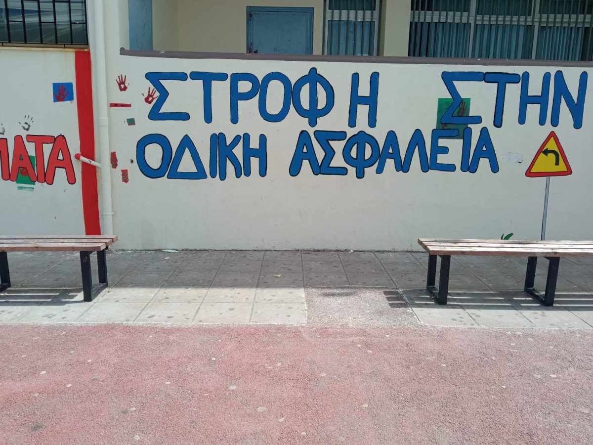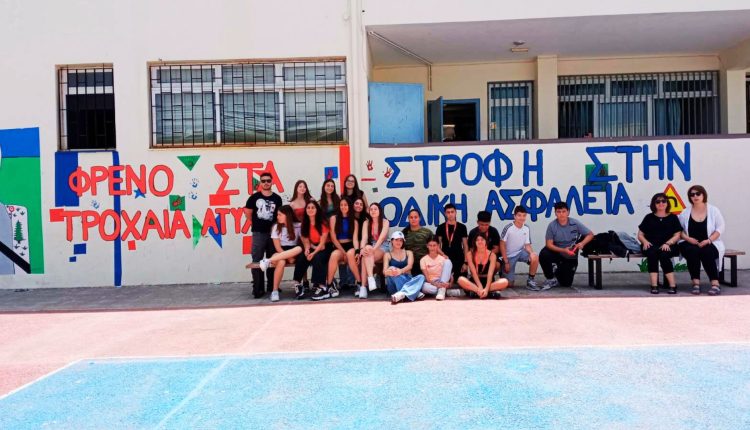 Μια ακόμα δράση για την πρόληψη των Τροχαίων ατυχημάτων πραγματοποιήθηκε στο Γυμνάσιο Γαζίου στο πλαίσιο του Σχεδίου Δράσης με τίτλο: «Φρένο στα Τροχαία Ατυχήματα- Στροφή στην Οδική Ασφάλεια». Η ομάδα της ζωγραφικής με την καθοδήγηση του εκπαιδευτικού των εικαστικών, Πρωτόγερου Διονύσιου, δημιούργησε μία τοιχογραφία σε κεντρικό τοίχο του σχολείου. Πρόκειται για ένα αντίγραφο έργο, δημιουργία του μαθητή Ραγκούση Ζέππου, το οποίο έχει βραβευτεί στον 2ο Πανελλήνιο Διαγωνισμό Σκίτσου για την Οδική Ασφάλεια το 2013. Για τις ανάγκες της τοιχογραφίας, το έργο αναπαρήγαγε η μαθήτρια Φθενού Εβελίνα (Β9).