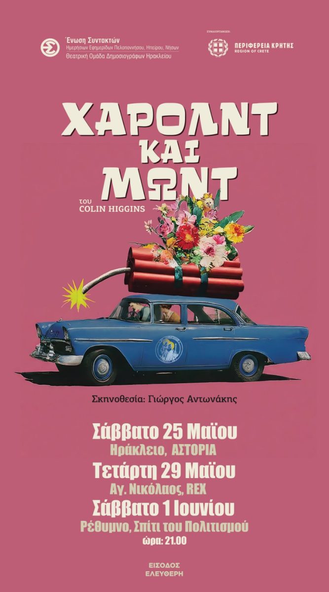 Οι δημοσιογράφοι-ταλαντούχοι ηθοποιοί παρουσίασαν το αριστουργηματικό έργο του Κόλιν Χίγγινς «Χάρολντ και Μώντ» σε σκηνοθεσία Γιώργου Αντωνάκη και μουσική του Μίλτου Λογιάδη, παραστάσεις που θα συνεχιστούν μετά το Ηράκλειο, την Τετάρτη