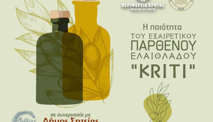 Η Περιφέρεια Κρήτης και το Ελληνικό Μεσογειακό Πανεπιστήμιο, σε συνεργασία με το Δήμο Σητείας, διοργανώνουν ημερίδα για την ποιότητα του Εξαιρετικού Παρθένου Ελαιόλαδου “Kriti” η οποία θα πραγματοποιηθεί το Σάββατο 1 Ιουνίου 2024, στις 11:00, στο Οικομουσείο του Δήμου Σητείας. Την εκδήλωση υποστηρίζουν οι: Σύνδεσμος Εξαγωγέων Κρήτης, Σύνδεσμος Τυποποιητών Ελαιολάδου Κρήτης, Σύνδεσμος Ελαιοκομικών Δήμων Κρήτης, Δίκτυο Κρητικού Ελαιολάδου, Σύνδεσμος Ελαιουργών Ν. Ηρακλείου.