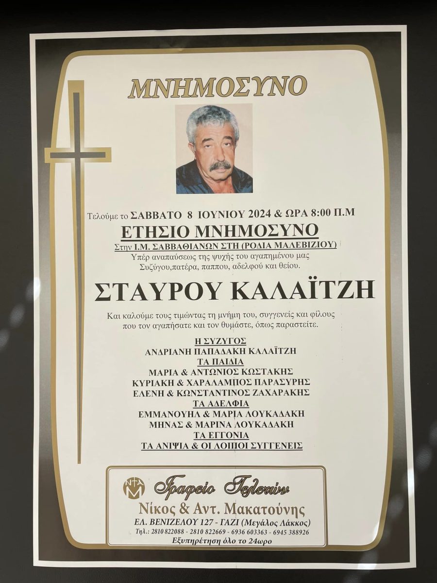 Το ετήσιο μνημόσυνο του Σταύρου Καλαιτζή θα γίνει το ερχόμενο Σάββατο.