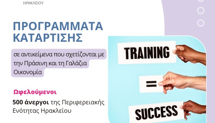 Το Επιμελητήριο Ηρακλείου θα υλοποιήσει επιδοτούμενα προγράμματα κατάρτισης για ανέργους της Περιφερειακής Ενότητας Ηρακλείου. Οι καταρτίσεις θα διεξαχθούν στο πλαίσιο του έργου με τίτλο «Δράσεις προώθησης στην απασχόληση για ανέργους μέσω συμβουλευτικής, κατάρτισης, πρακτικής άσκησης και πιστοποίησης δεξιοτήτων, στην Περιφέρεια της Κρήτης» και θα έχουν εκπαιδευτικό επίδομα έως 2.250 ευρώ.