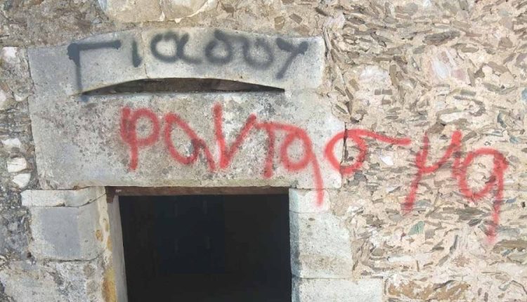 Βάνδαλοι βεβήλωσαν τον Πύργο των Καλλεργών στη Ροδιά όπως βλέπουμε και στη σχετική φωτογραφία γράφοντας σύνθημα.