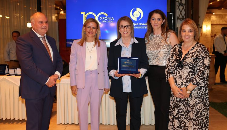 Ακολούθησε η βράβευση της κας Τώνιας Περυσινάκη ως δραστήριας εκπροσώπου της γυναικείας επιχειρηματικότητας και των πρώην στελεχών του Επιμελητηρίου Ηρακλείου, οι οποίοι υπηρέτησαν με αυταπάρνηση την τοπική επιχειρηματικότητα και βοήθησαν με τις γνώσεις και την εμπειρία τους στην ανάπτυξή της.