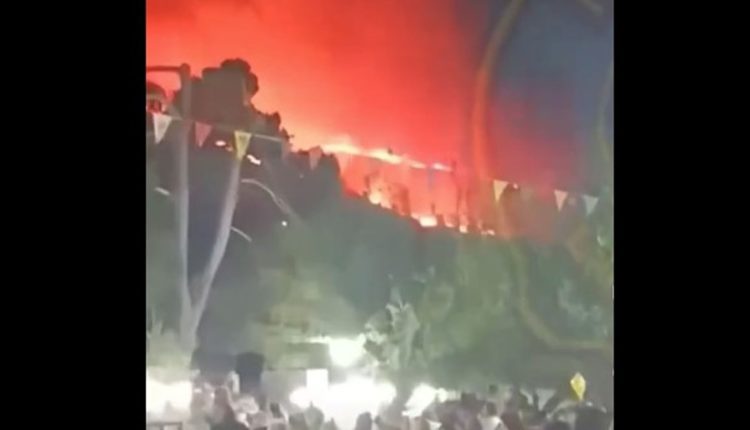 Αίσθηση προκαλούν εικόνες που έχουν αναρτηθεί σε σελίδα στο Facebook στις οποίες φαίνεται κόσμος στη Ζάκυνθο να συνεχίζει να διασκεδάζει σε πανηγύρι, την ώρα που η φωτιά σε δάσος καίει ακριβώς από πίσω τους.