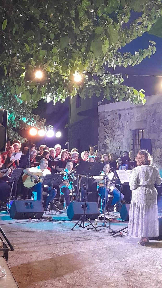 Από τη Μικρά Ασία έως την Κέρκυρα και από την Κρήτη έως τη Μακεδονία είχαν την ευκαιρία να ταξιδέψουν μουσικά όσοι βρέθηκαν το βράδυ της περασμένης Κυριακής στον μαρτυρικό Σάρχο. Με ιδιαίτερο κέφι τα μέλη της χορωδίας του Πολιτιστικού Συλλόγου Νέας Αλικαρνασσού “Η Αρτεμισία” οι εξαιρετικοί σολίστ και η ορχήστρα ”Διαπασών” υπό την καλλιτεχνική διεύθυνση της κας Μαίρης Μαρκοπούλου ερμήνευσαν τραγούδια από τις αλησμόνητες πατρίδες, παραδοσιακά αλλά και σύγχρονα έντεχνα τραγούδια σε έναν ιδιαίτερο χώρο δίπλα στην παλιά φάμπρικα του χωρίου.