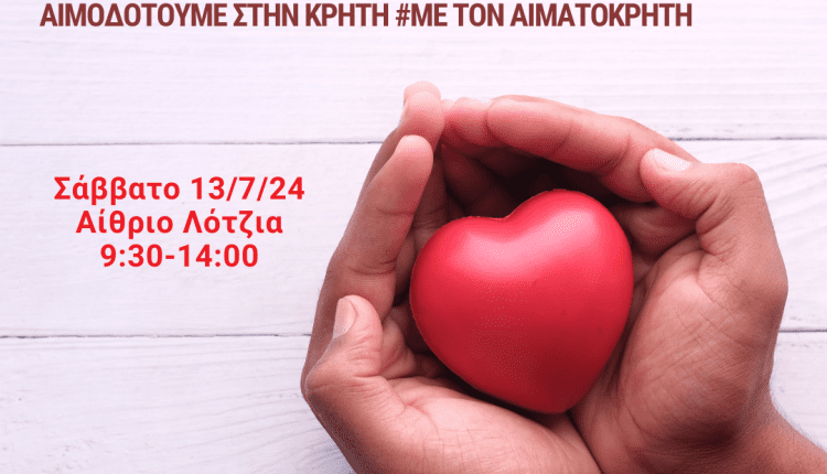 Το Σάββατο 13/07/2024 και θα πραγματοποιηθεί εθελοντική αιμοδοσία στο κέντρο της πόλης του Ηρακλείου και συγκεκριμένα στο αίθριο της Λότζια από τις 9:30 έως τις 14:00.
