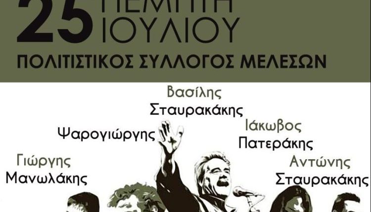 Ο Εκπολιτιστικός σύλλογος Μελεσανών Πεδιάδας σε συνδιοργάνωση με την Περιφέρεια Κρήτης διοργανώνει κρητικό γλέντι στις 25 Ιουλίου 2024 και ώρα 21:00 στον προαύλιο χώρο του γυμνασίου – λυκείου Μελεσών με τους: