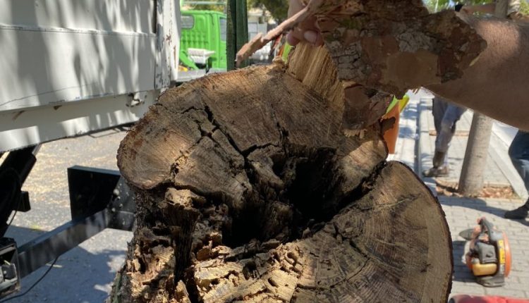 Αναγκαία η απομάκρυνση του παλιού δέντρου που είχε πάρει επικίνδυνη κλίση και είχε αρχίσει να σαπίζει – Πρόλαβε τα χειρότερα ο Δήμος Ηρακλείου.