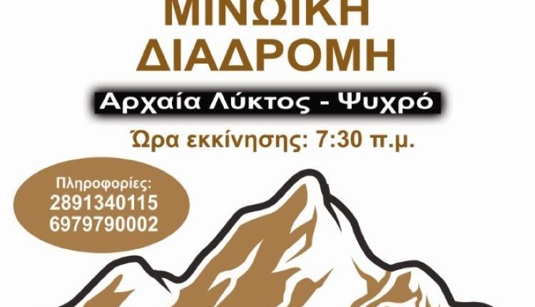 Οι περιπατητές θα πραγματοποιήσουν πεζοπορία διάρκειας περίπου τεσσάρων ωρών, με αφετηρία το Ναό του Τιμίου Σταυρού Αρχαίας Λύκτου στις 7:30 π.μ. και τερματισμό το Ψυχρό.