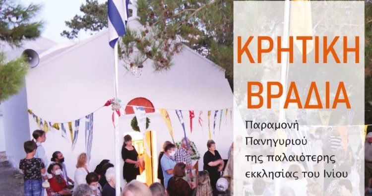 Με αφορμή το πανηγύρι του χωριού, «το Γενέσιο της Θεοτόκου», θα πραγματοποιηθεί η προγραμματισμένη «ΚΡΗΤΙΚΗ ΒΡΑΔΙΑ», στο μαγευτικό τοπίο της Κεράς, στις παρυφές του αρχαιολογικού χώρου της Ρωμαϊκής Αρκαδίας και του ανακαινισμένου Νερόμυλου, στο παλιό φράγμα Ινίου, το Σάββατο 07 Σεπτεμβρίου 2024, με ώρα έναρξης 20:30.