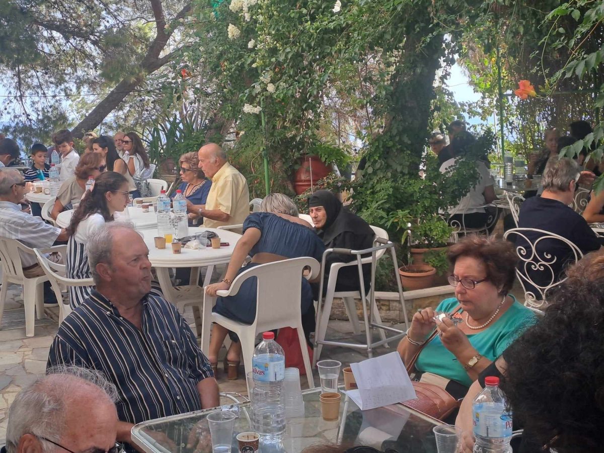 Αμέσως μετά το τέλος της Θείας Λειτουργείας το μοναστήρι κέρασε καφέ όλους όσους παρευρέθηκαν , κάτω από τα δέντρα με θέα το απέραντο γαλάζιο του κόλπου των Ελληνοπεραμάτων, για να τους ευχαριστήσει για την παρουσία τους
