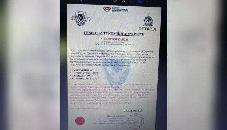Η κοπέλα έλαβε ένα έγγραφο, δήθεν από το Υπουργείο Δικαιοσύνης και Δημόσιας Τάξης, την Interpol και την Αστυνομία Κύπρου, με σφραγίδες-μαϊμού και υπογραφές, μέσω του οποίου ενημερωνόταν από τον “Γενικό Διευθυντή της Αστυνομίας Κύπρου” ότι κατηγορείται για “κυβερνοπορνό”, “πορνό ιστοσελίδες”, “παιδική πορνό”, “νόμιμο βιασμό”. “Κερασάκι στην τούρτα” η υπογραφή … Η Κατεύθυνση (αντί για “διεύθυνση”).