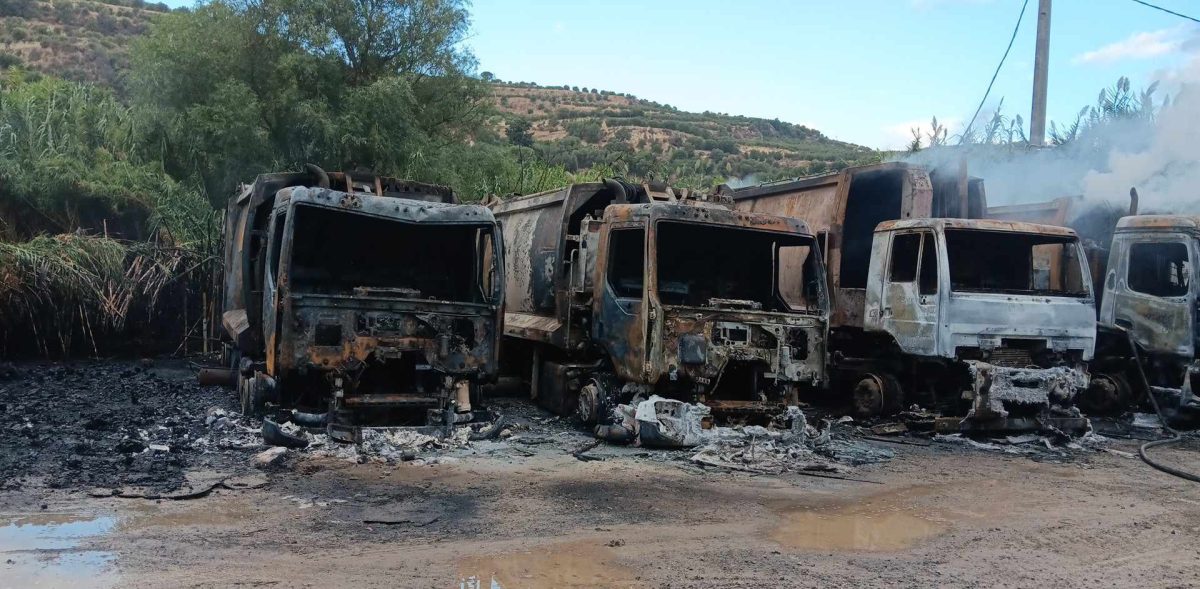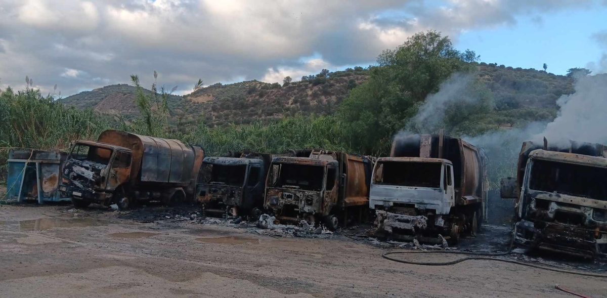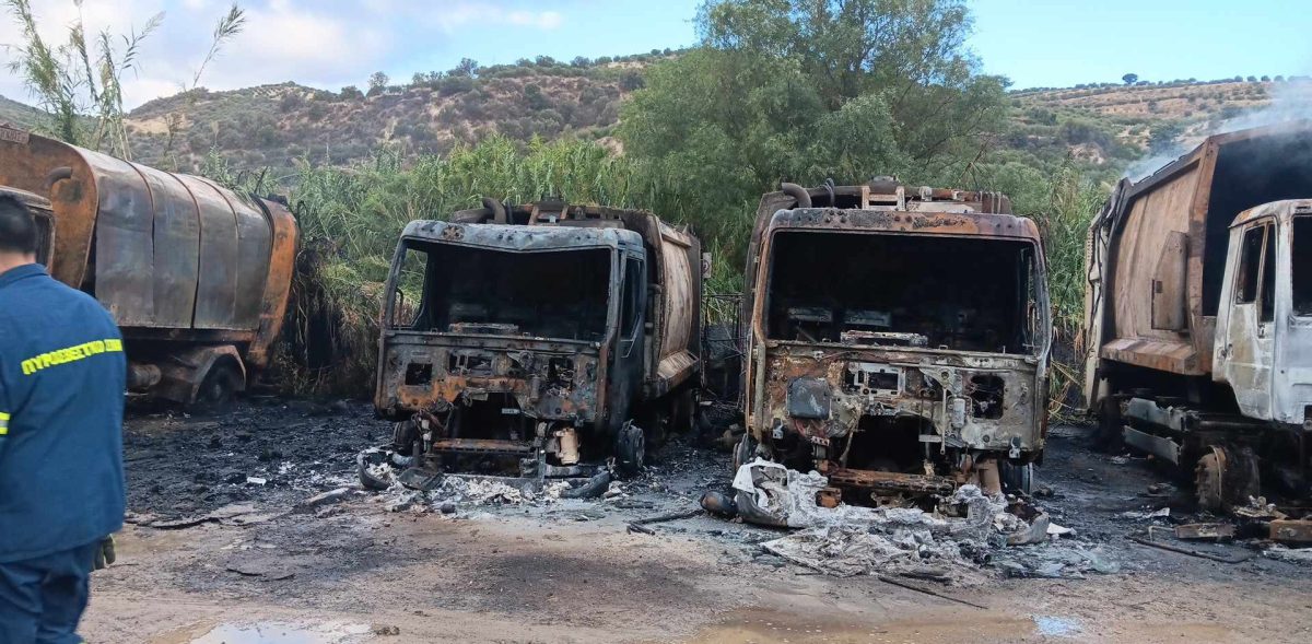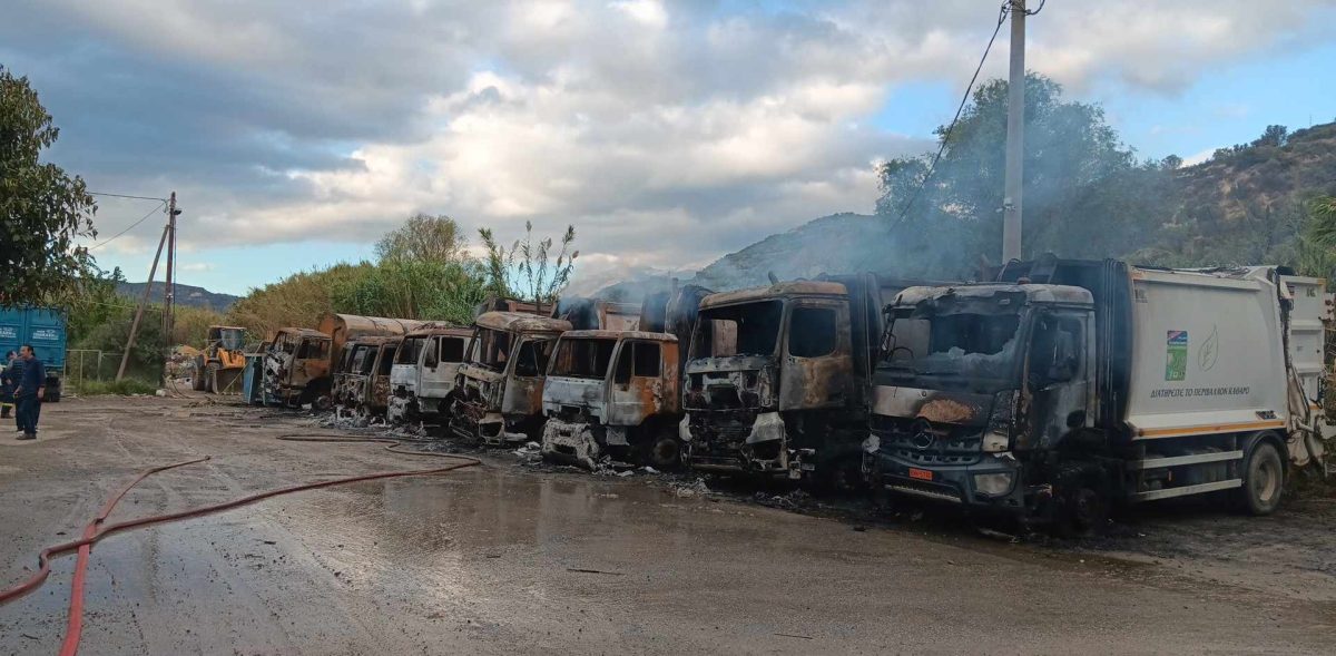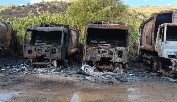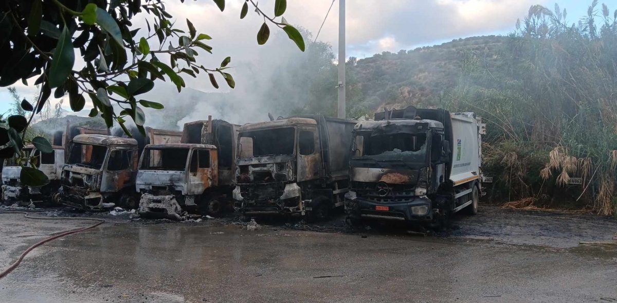 Συνολικά καταστράφηκαν οκτώ απορριμματοφόρα ενώ ζημιές υπέστη και ένα από τα μηχανήματα του δήμου.