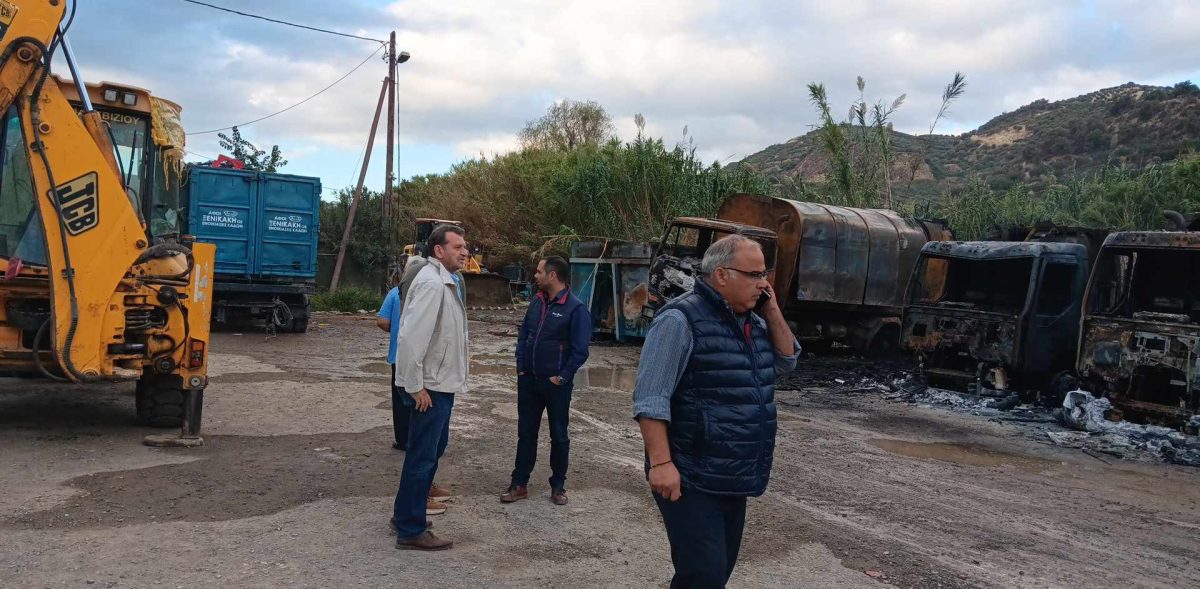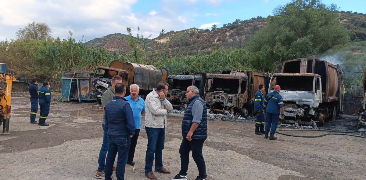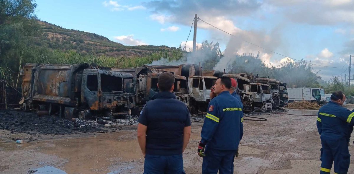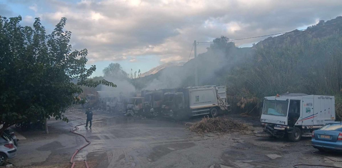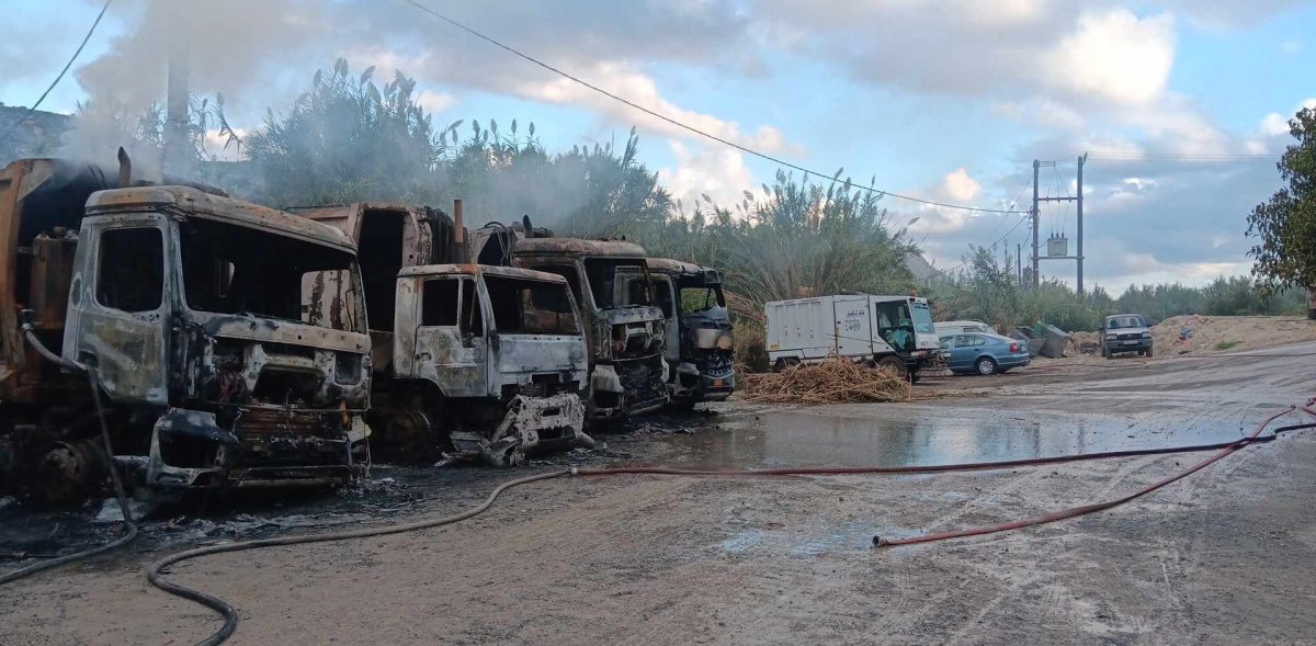 Συνολικά καταστράφηκαν οκτώ απορριμματοφόρα ενώ ζημιές υπέστη και ένα από τα μηχανήματα του δήμου.