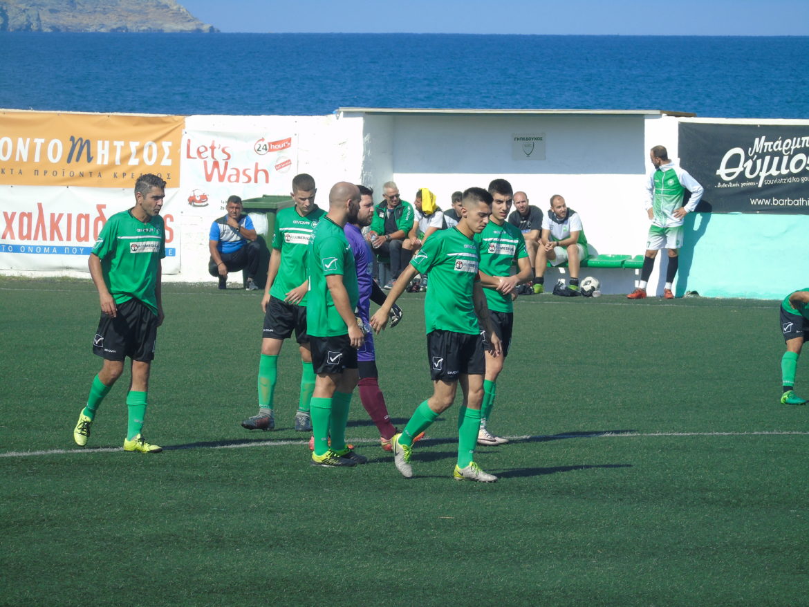 Στο 17′ σέντρα του Μουντράκη από σταμάτημα της μπάλας και σουτ του Σφακιανάκη η μπάλα λίγο άουτ.