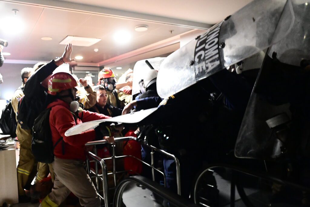 Στο μεταξύ χθες έξω από το Υπουργείο Κλιματικής Κρίσης σημειώθηκαν βίαια επεισόδια μεταξύ των εποχικών πυροσβεστών και των δυνάμεων των ΜΑΤ, ενώ έγιναν τουλάχιστον 4 προσαγωγές. Οι αστυνομικές δυνάμεις έριξαν και δακρυγόνα μέσα στο κτίριο προκειμένου να καταστείλουν τις ενέργειες των πυροσβεστών και να εκκενώσουν την κατάληψη.