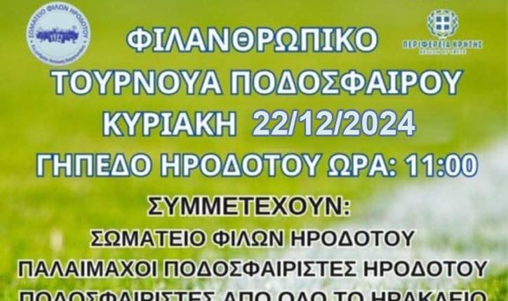 Φιλανθρωπικό τουρνουά ποδοσφαίρου με την στήριξη της Περιφέρειας Κρήτης