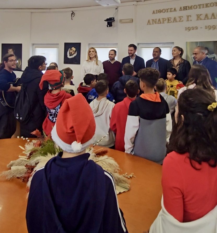 Σε εορταστικό κλίμα πραγματοποιήθηκε η επίσκεψη των μαθητών της ΣΤ τάξης του 1 ου Δημοτικού Σχολείου Αγίας Μαρίνας και του 2ου & 3ου Δημοτικού Σχολείου Γαζίου, στο Δημαρχείο Μαλεβιζίου, όπου είπαν τα χριστουγεννιάτικα κάλαντα στον Δήμαρχο Μενέλαο Μποκέα.