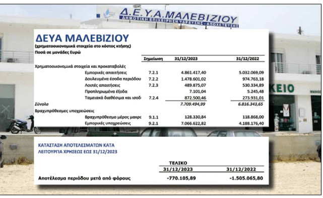 Η Δ.Ε.Υ.Α. Μαλεβιζίου βρίσκεται στο κρισιμότερο σημείο της πορείας της από το 2005 όπου και ιδρύθηκε. Τη δραματική κατάσταση που έχει περιέλθει η δημοτική επιχείρηση επιβεβαιώνει και ο Ισολογισμός του 2023 ο οποίος καταγράφει άλλη μια ζημιογόνο χρήση όπως προαναφέρθηκε ύψους 770.105,89 ευρώ.