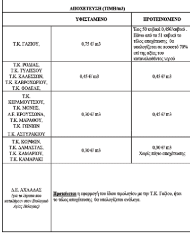 Η Οικονομική υπηρεσία της ΔΕΥΑΜ με βάση τη μελέτη που εκπόνησε κάνοντας χρήση του υποδείγματος του Πολυτεχνείου Κρήτης σε συνάρτηση με το Υπόδειγμα της Ε.Δ.Ε.Υ.Α. προτείνει τις αναπροσαρμογές ως εξής: Την από 01/01/2025 αναπροσαρμογή του τιμολογίου, κατά τέτοιο τρόπο ώστε να επιφέρει όσο το δυνατόν μικρότερη επιβάρυνση σε όσους έχουν μικρές καταναλώσεις. Συγκεκριμένα, στα τιμολόγια που αφορούν την ύδρευση προτείνεται μείωση της πρώτης κλίμακας (0-10 m3) κατά 55%, στην κλίμακα (11-30) μείωση 34% και αύξηση στις υπόλοιπες κλίμακες σε ποσοστό 29,50%. Επιπλέον, λόγω των αυξημένων αναγκών συντήρησης των υποδομών σε δίκτυα ύδρευσης και αποχέτευσης αλλά και σε αντλιοστάσια, μονάδες επεξεργασίας λυμάτων και λοιπές υποδομές κρίνεται η αύξηση του παγίου ύδρευσης – αποχέτευσης με υπολογισμό ανά μήνα στο ποσό των 5,00 ευρώ. Για την αποχέτευση προτείνεται η εφαρμογή του τιμολογίου ανάλογα τα σχετικά κόστη λειτουργίας των μονάδων επεξεργασίας λυμάτων. Για την δημοτική ενότητα Γαζίου προτείνεται ο υπολογισμός με 0,45 ως τα 50 κυβικά και από 51 κυβικά και πάνω με ποσό 70% επί της αξίας ύδρευσης, ενώ το ίδιο τιμολόγιο προτείνεται να εφαρμοστεί και για την περιοχή της Δημοτικής Ενότητας Αχλάδας, για τα λύματα, δηλαδή, που καταλήγουν στον Βιολογικό Αγίας Πελαγίας. Για όλες τις υπόλοιπες περιοχές που διαθέτουν ΕΕΛ προτείνεται σταθερή τιμή χρέωσης σε 0,45 € / κυβικό, ενώ για τις περιοχές που δεν λειτουργεί ακόμα ΕΕΛ και υπάρχουν δίκτυα προσδιορίζεται η τιμή των 0,30 € / κυβικό προκειμένου να εξοικονομηθούν πόροι και να γίνει δυνατή η συντήρηση των δικτύων και η κατασκευή υποδομών ΕΕΛ. Επιπλέον προτείνεται η λήψη απόφασης παροχής έκπτωσης 5% στους καταναλωτές που είναι συνεπείς στην εξόφληση των λογαριασμών τους κατά την πρώτη έκδοση του λογαριασμού. Η εισήγηση αυτή της ΔΕΥΑΜ αποτελεί τον “προθάλαμο” των αυξήσεων ωστόσο οι τελικές αποφάσεις θα παρθούν από το Δημοτικό Συμβούλιο Μαλεβιζίου.